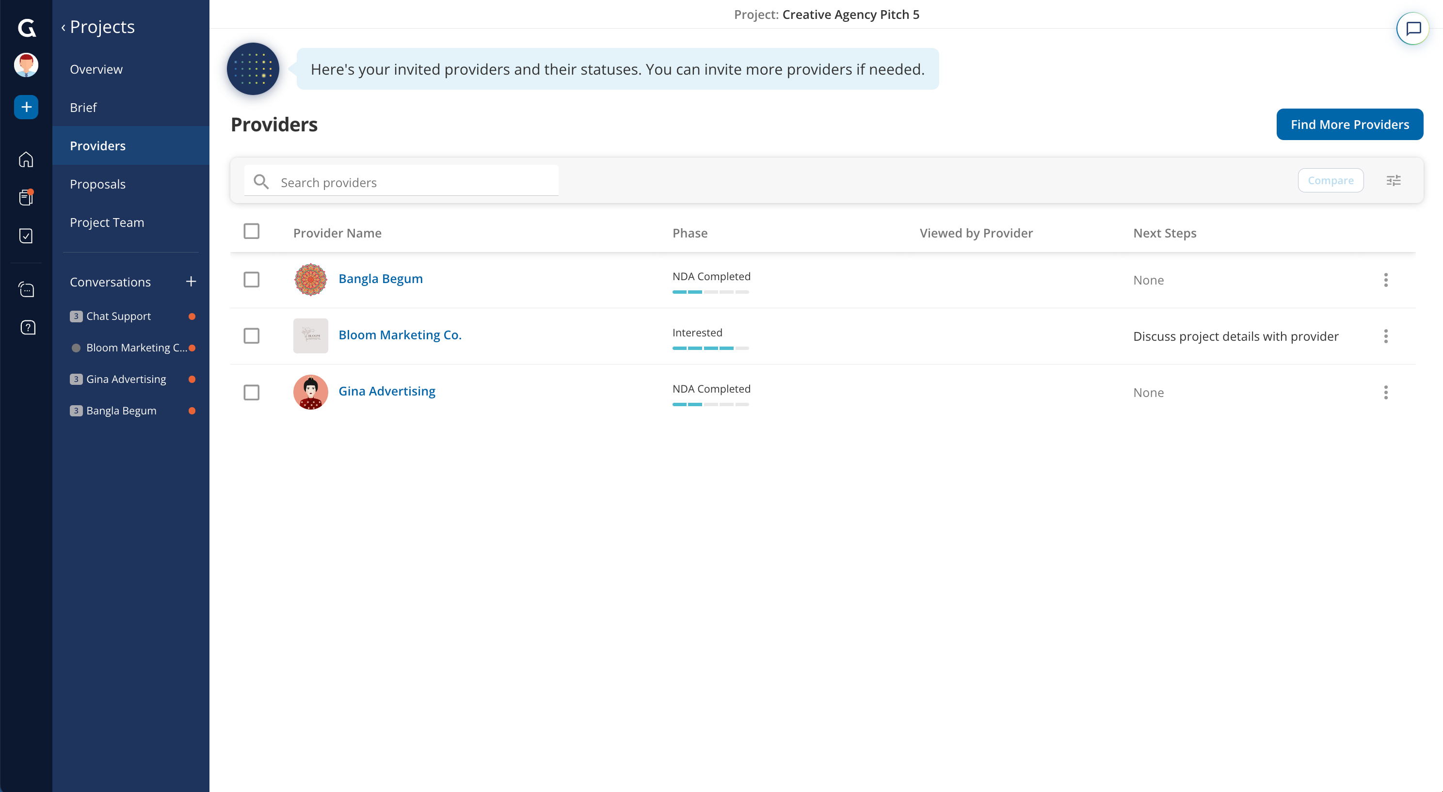 Yes. After you’ve already invited providers to your project, you can navigate to “Providers” via the navigation panel and click on “Find more providers”.